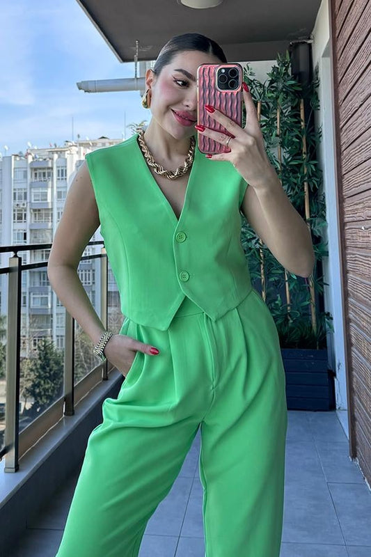 3 AL 2 ÖDEMaso Pantolon Yelek Takım - Yeşil