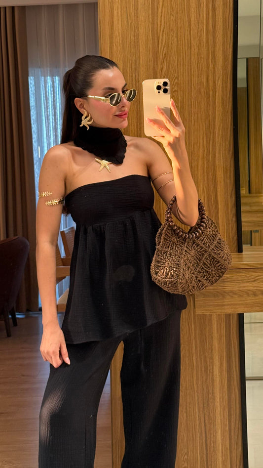 3 AL 2 ÖDEMatias Siyah Müslin Bandanalı İkili Takım