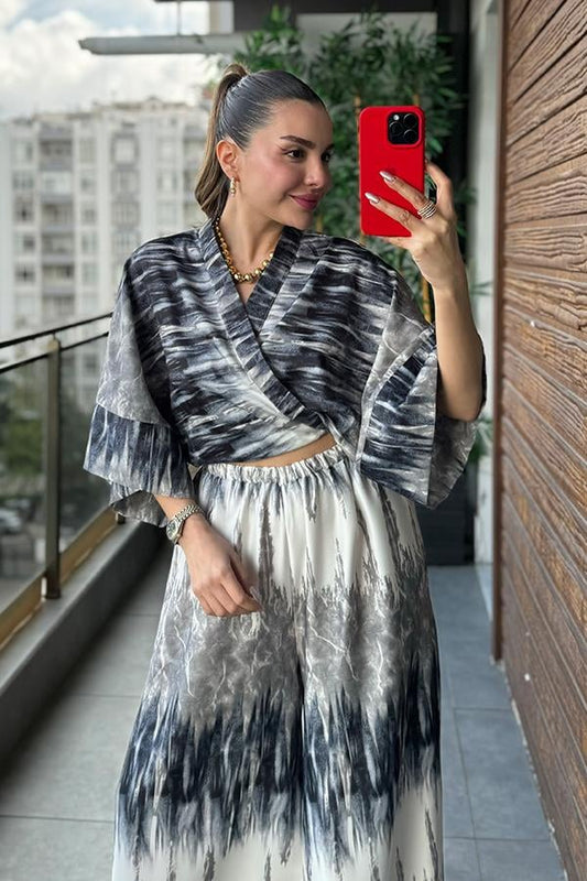 Manisha Bağlamalı Gömlek Pantolon Takım - Füme