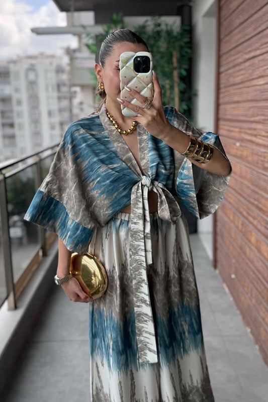Manisha Bağlamalı Gömlek Pantolon Takım - Turkuaz