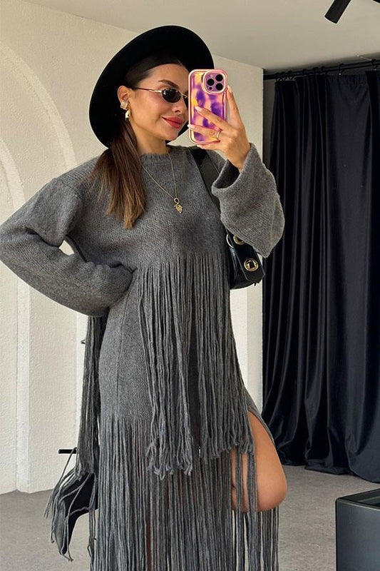 3 AL 2 ÖDEMarchand Püsküllü Füme Triko Takım