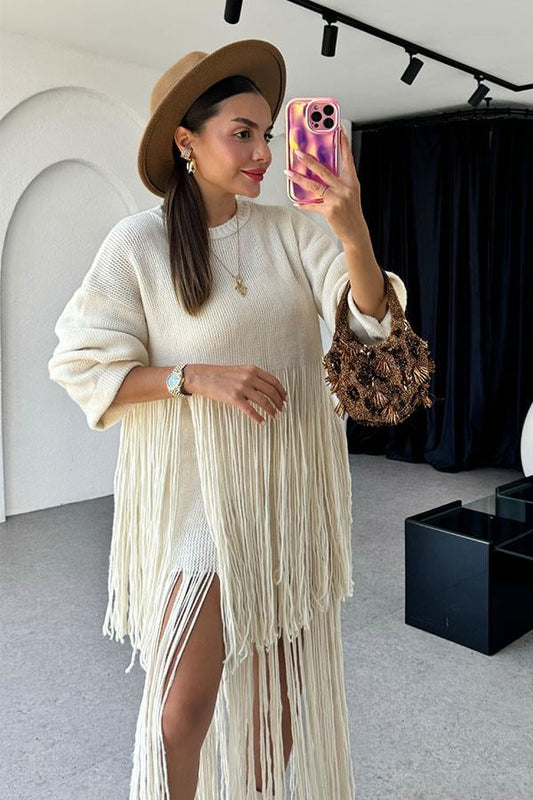 3 AL 2 ÖDEMarchand Püsküllü Krem Triko Takım