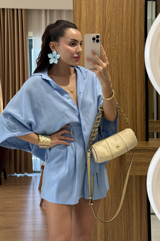 3 AL 2 ÖDEMareis Mavi Gömlek Şort Keten Takım