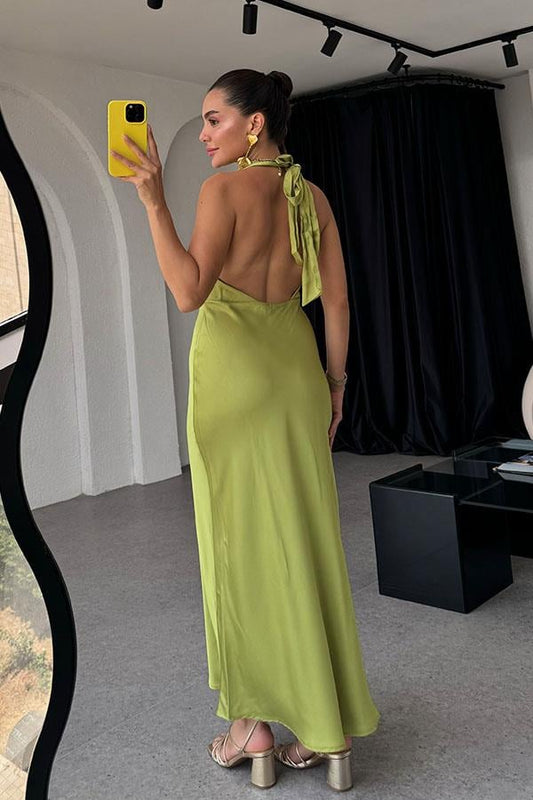 Dakota Orijinal Sırt Dekolteli Yağ Yeşil Elbise