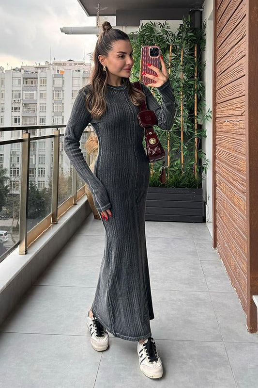 3 AL 2 ÖDEDani Asit Yıkama Elbise - Antrasit