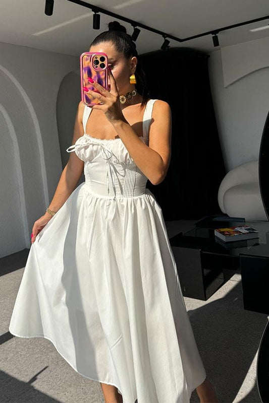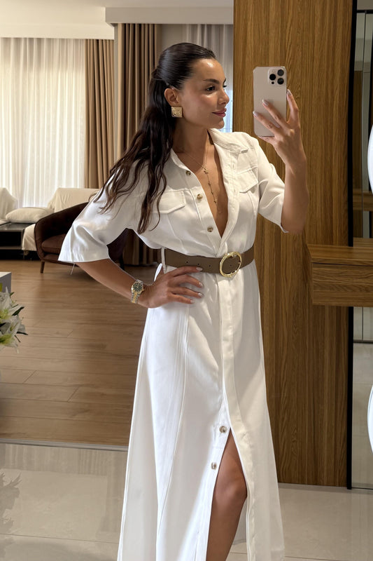 3 AL 2 ÖDEDawny Beyaz Kemerli Cep Detaylı Elbise