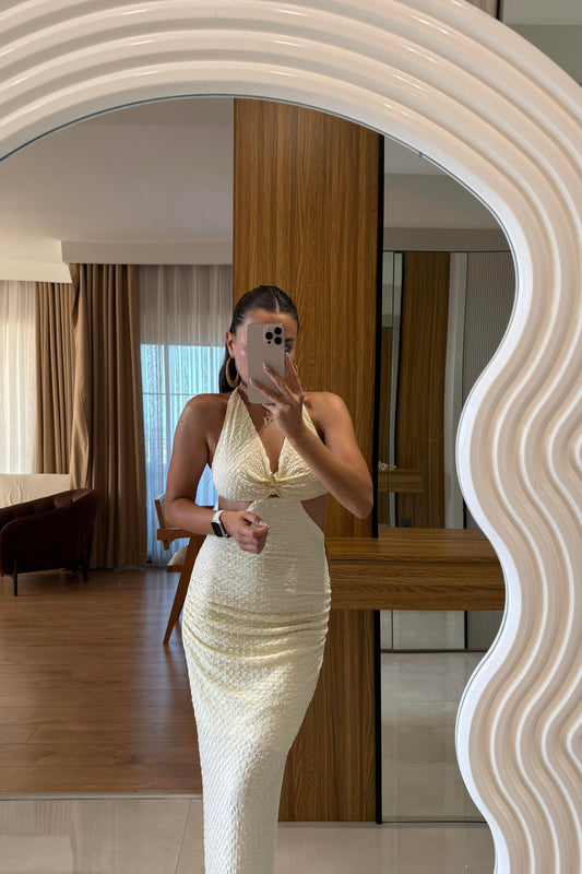 3 AL 2 ÖDEDarel Ekru Deniz Yıldızı Aksesuarlı Elbise