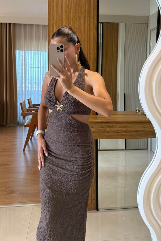 3 AL 2 ÖDEDarel Kahve Deniz Yıldızı Aksesuarlı Elbise