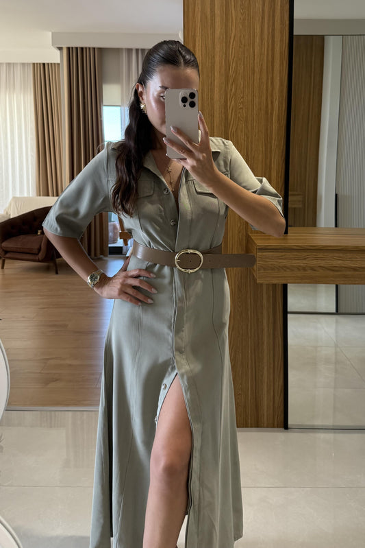 3 AL 2 ÖDEDawny Haki Kemerli Cep Detaylı Elbise