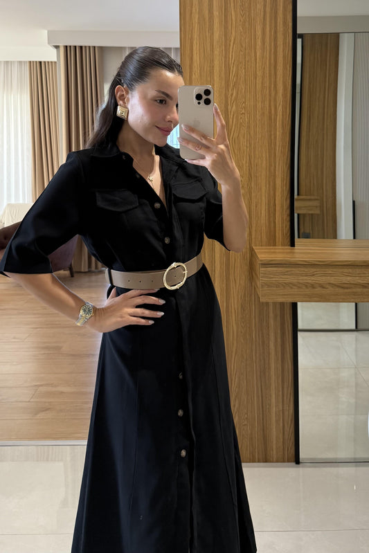 3 AL 2 ÖDEDawny Siyah Kemerli Cep Detaylı Elbise