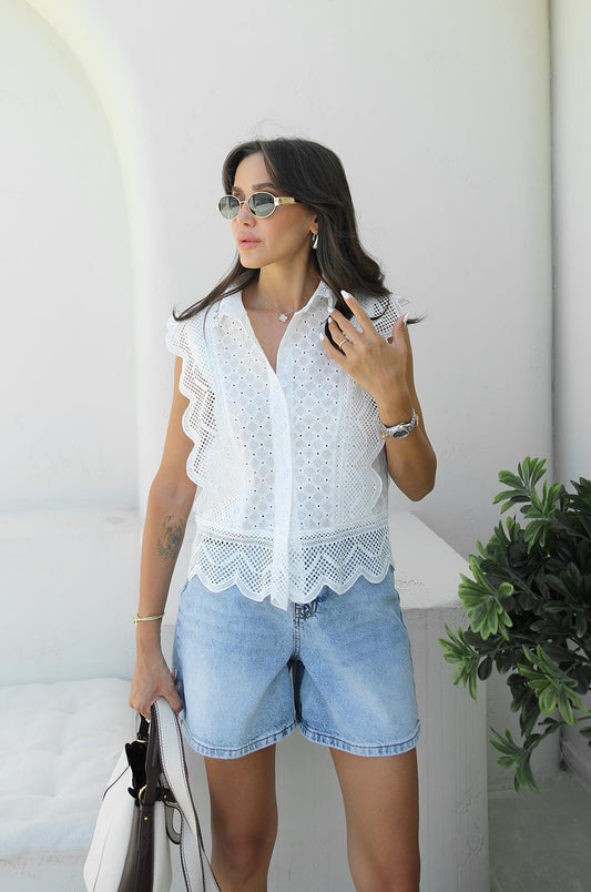 3 AL 2 ÖDEEKRU ÖRGÜ DANTEL DETAYLI TRIKO YELEK