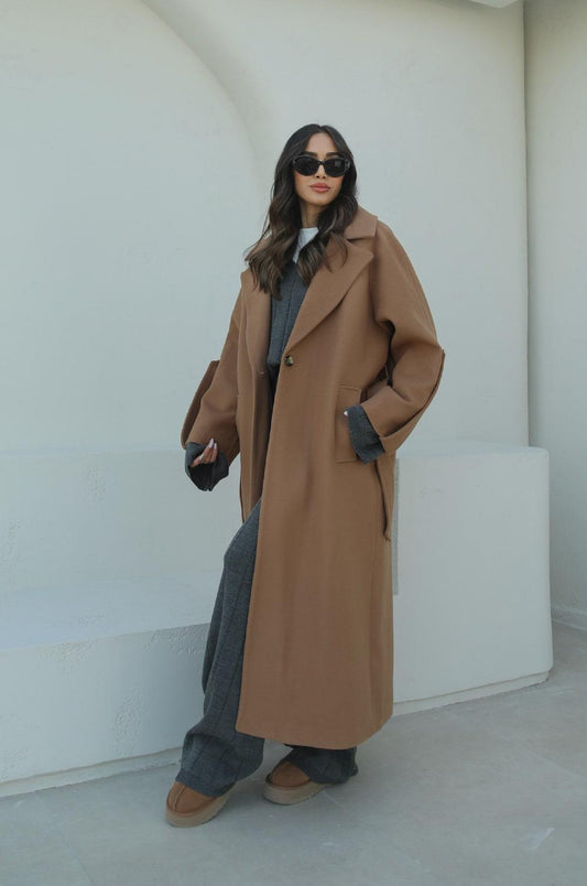 AÇIK KAHVERENGI HILDA KOLLARI CEP DETAYLI KAŞE KABAN