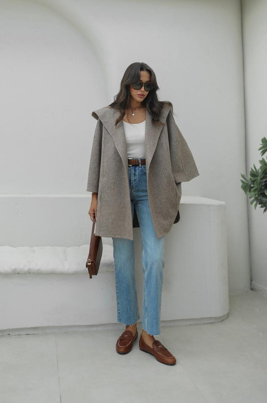 3 AL 2 ÖDEKAHVERENGI KUŞAKLI YÜN KABAN