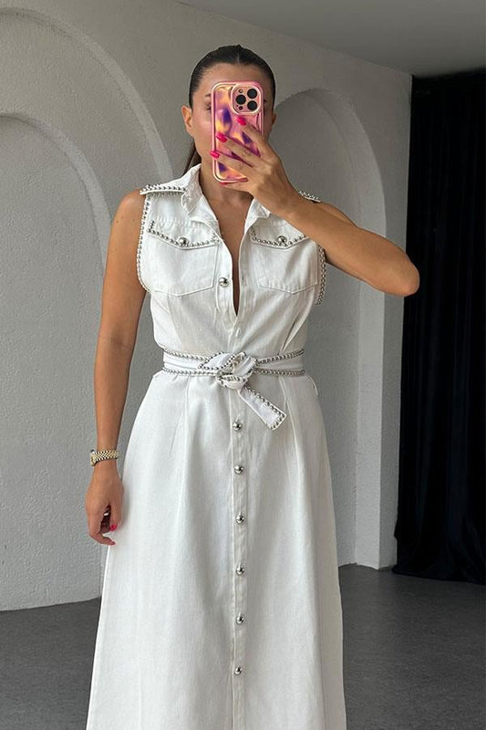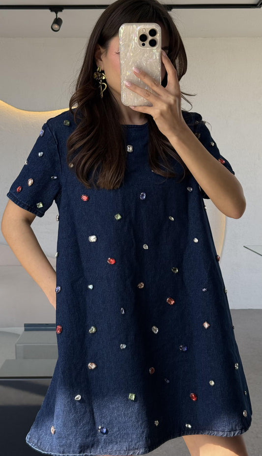 3 AL 2 ÖDEChema Renkli Taşlı Denim Elbise