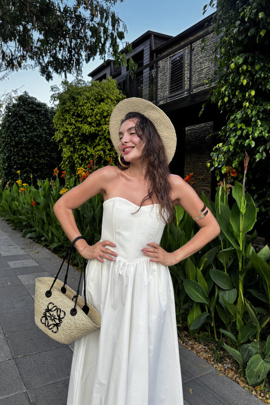3 AL 2 ÖDECharles Beyaz Kalp Yaka Çan Elbise