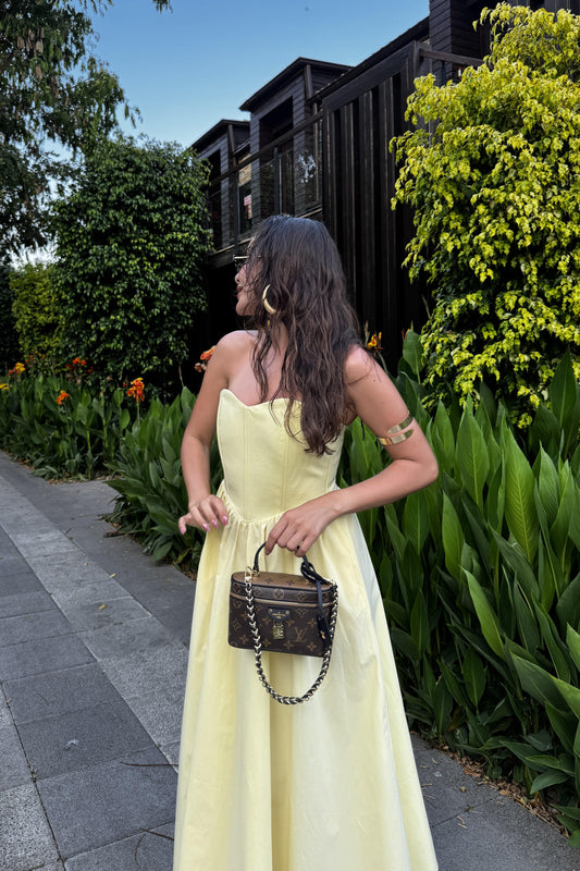 3 AL 2 ÖDECharles Sarı Kalp Yaka Çan Elbise