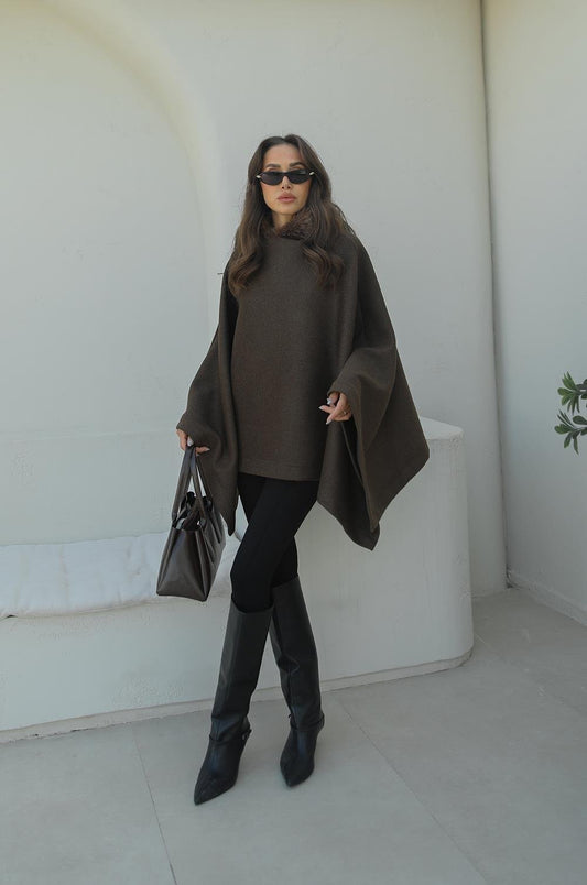 3 AL 2 ÖDEKAHVERENGI KAPÜŞONU KÜRKLÜ YÜN PELERIN KABAN