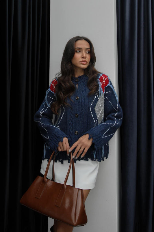 3 AL 2 ÖDEMAVI PÜSKÜL DETAYLI DESENLI HIRKA