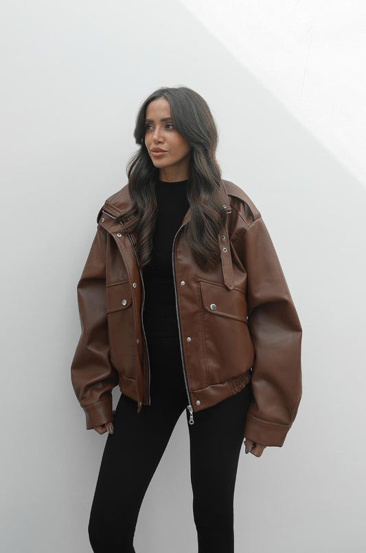3 AL 2 ÖDEKAHVERENGI YAKASI KEMER DETAYLI DERI CEKET