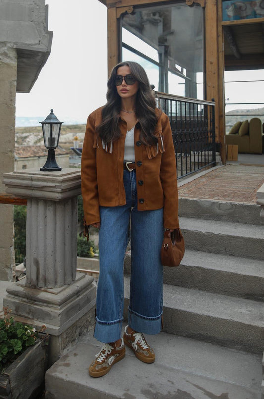 3 AL 2 ÖDETABA PÜSKÜL DETAYLI SÜET CEKET
