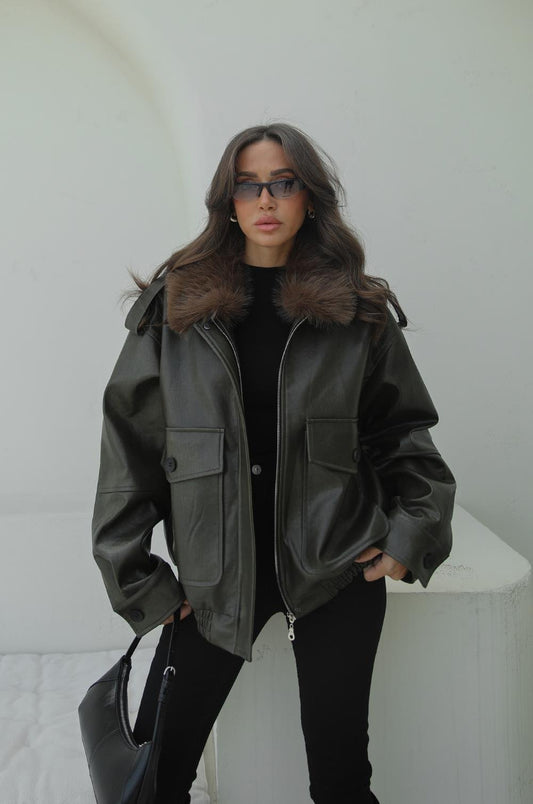 3 AL 2 ÖDEKAHVERENGI VATKALI KÜRK BOMBER CEKET