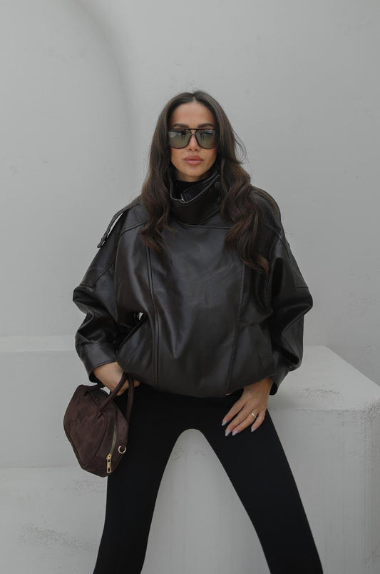 3 AL 2 ÖDEKAHVERENGI BOĞAZ DETAYLI DERI CEKET
