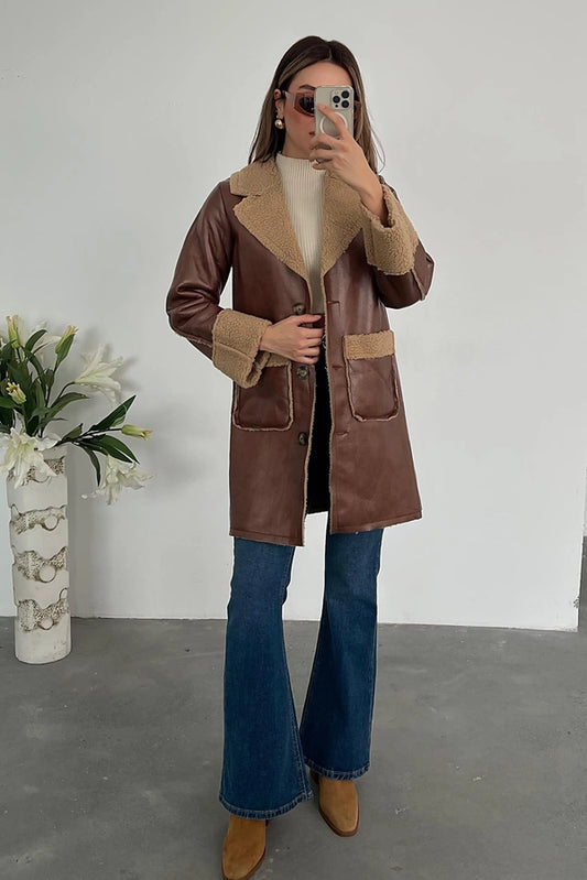 3 AL 2 ÖDEDeri Kürklü Kaban - KAHVERENGİ