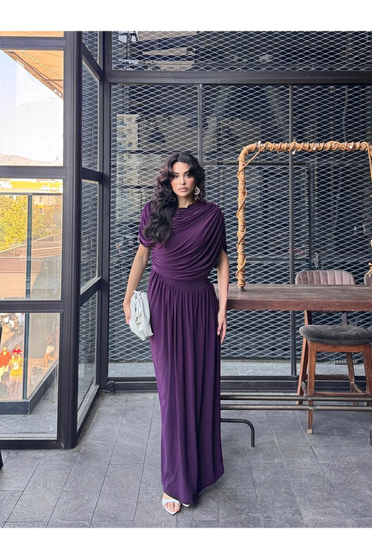 3 AL 2 ÖDEV Yaka Eteği Büzgülü Dökümlü Maxi Elbise