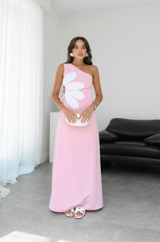 3 AL 2 ÖDEPEMBE YAN DEKOLTE KISMI ÇIÇEKLI ELBISE