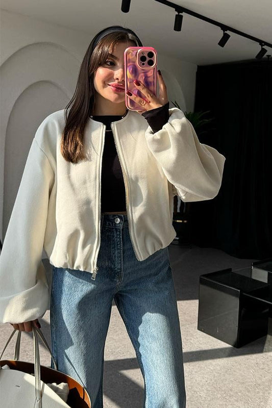 3 AL 2 ÖDEParsley Beyaz Kırçıllı Yakalı Mini Kaban