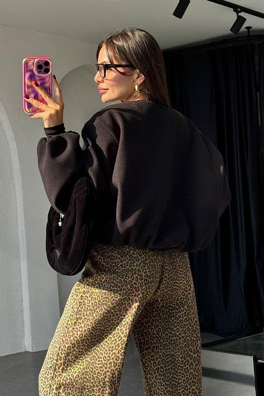 Panthera Siyah Pulpayet Detaylı Premium Kürk Kaban