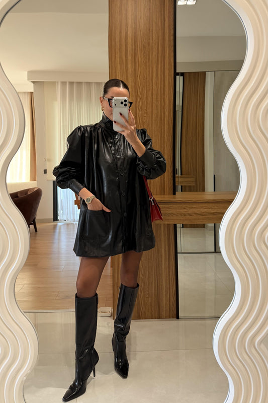 3 AL 2 ÖDEPicasso Siyah Balon Kol Deri Ceket