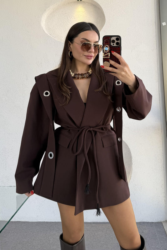 3 AL 2 ÖDEPolinya Acı Kahve Bağlamalı Tasarım Ceket