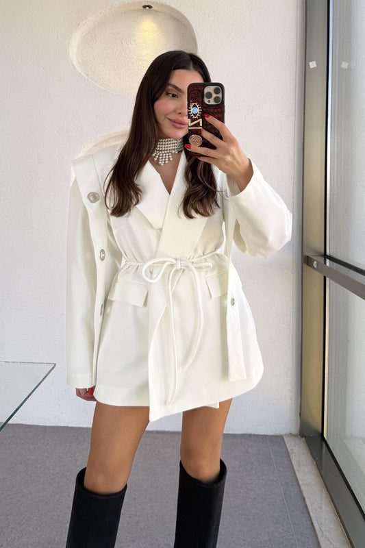 3 AL 2 ÖDEPolinya Beyaz Bağlamalı Tasarım Ceket