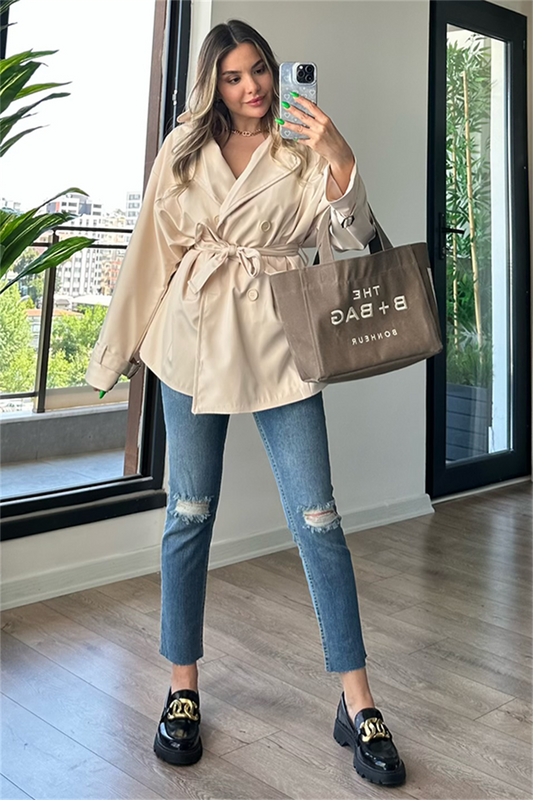 3 AL 2 ÖDELeah Kolu Kemer Detaylı Fermuarlı Ceket