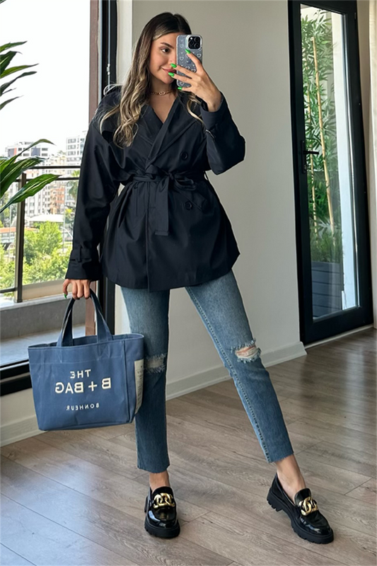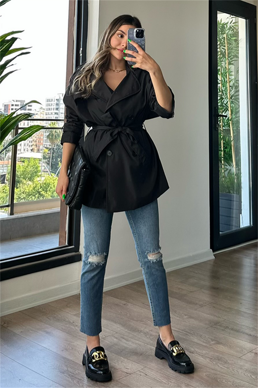 3 AL 2 ÖDELarry bel kuşak detaylı trençkot - Siyah