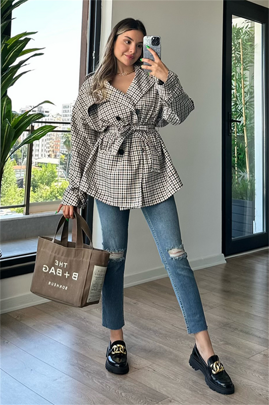 3 AL 2 ÖDELarry ekose desen bel kuşak detaylı trençkot