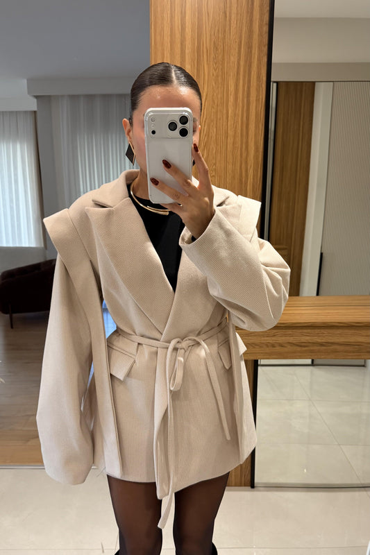 3 AL 2 ÖDEKatina Krem Tasarım Kuşaklı Ceket