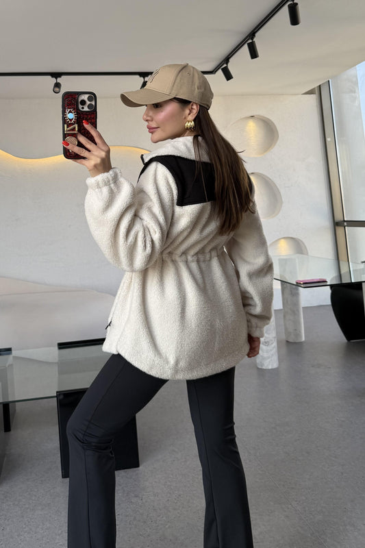 3 AL 2 ÖDEJonas Krem Beli Lastikli Teddy Ceket