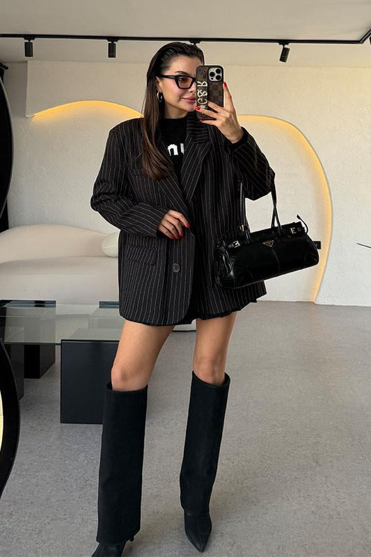 3 AL 2 ÖDEJoshua Siyah Çizgili Blazer Ceket