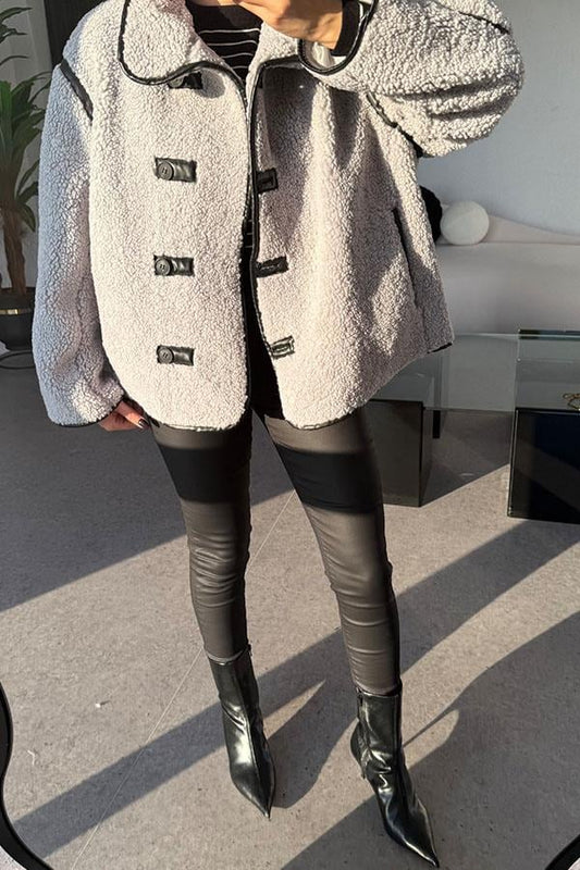 3 AL 2 ÖDEJovia Gri Peluş Deri Detaylı Ceket