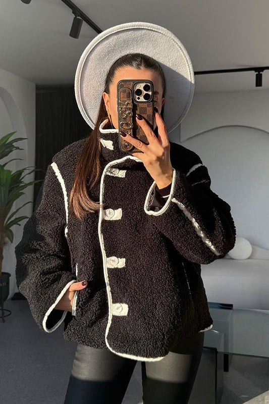 3 AL 2 ÖDEJovia Siyah Peluş Deri Detaylı Ceket