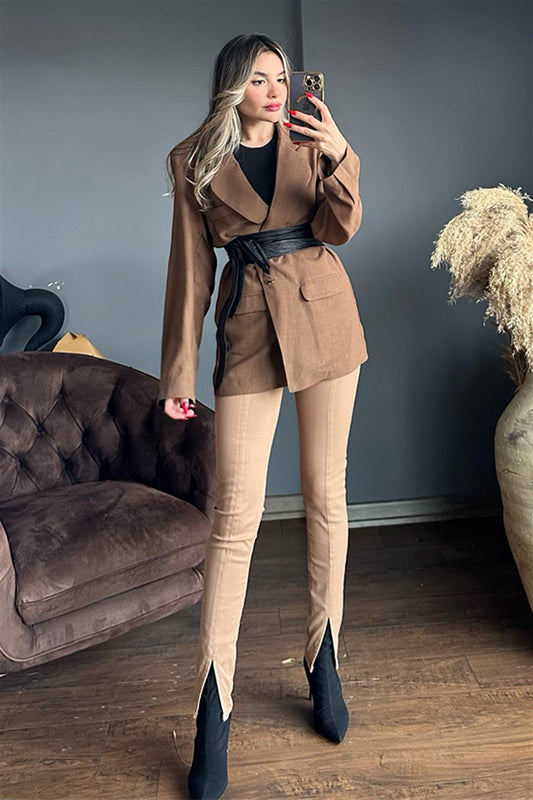 3 AL 2 ÖDEKahve cep detaylı blazer ceket