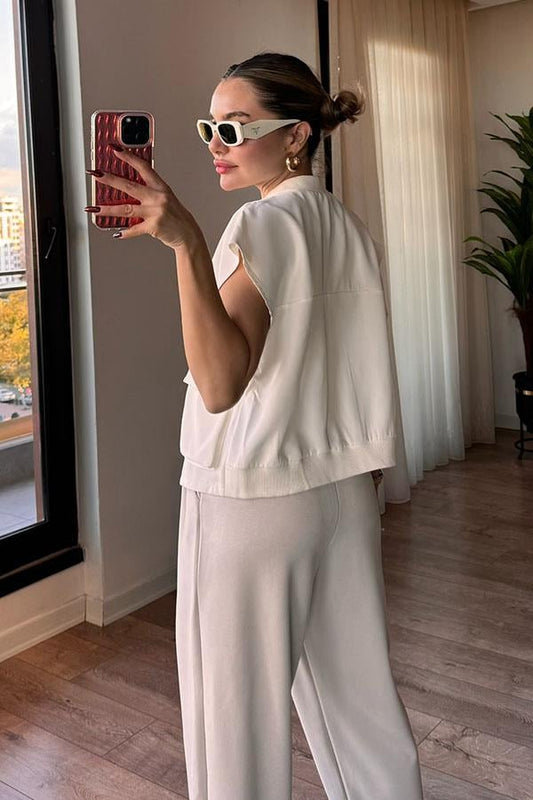3 AL 2 ÖDEJane Vatka Detaylı Beyaz Yelek