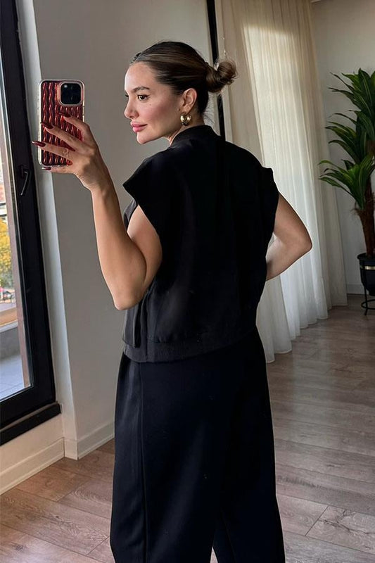 3 AL 2 ÖDEJane Vatka Detaylı Siyah Yelek