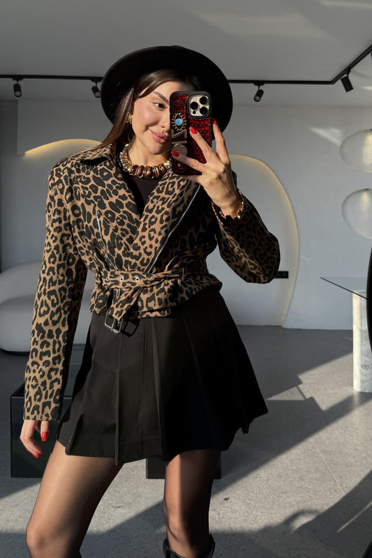 3 AL 2 ÖDEJaved Vatkalı Leopar Kemerli Ceket