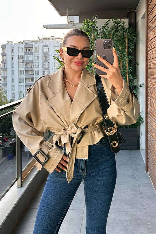 3 AL 2 ÖDEIndia Reglan Kısa Trençkot - Bej