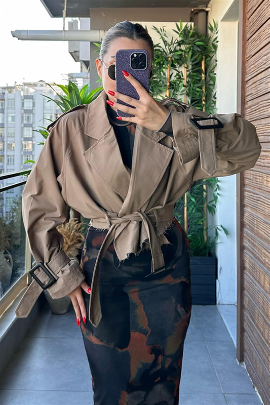 3 AL 2 ÖDEIndia Reglan Kısa Trençkot - Camel