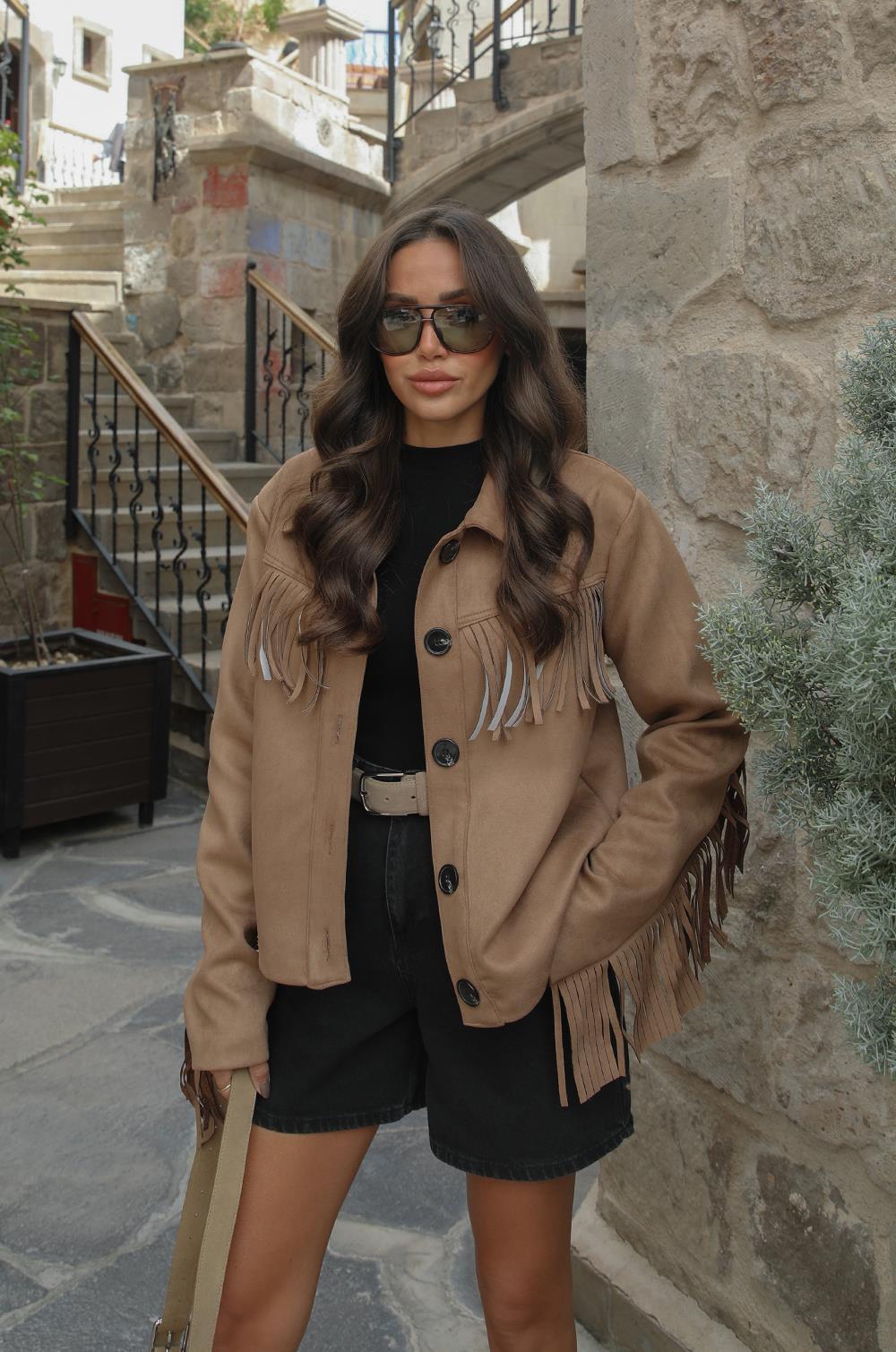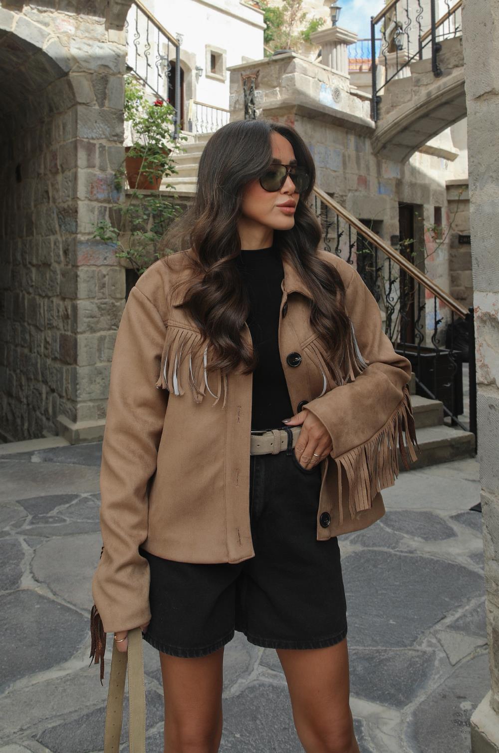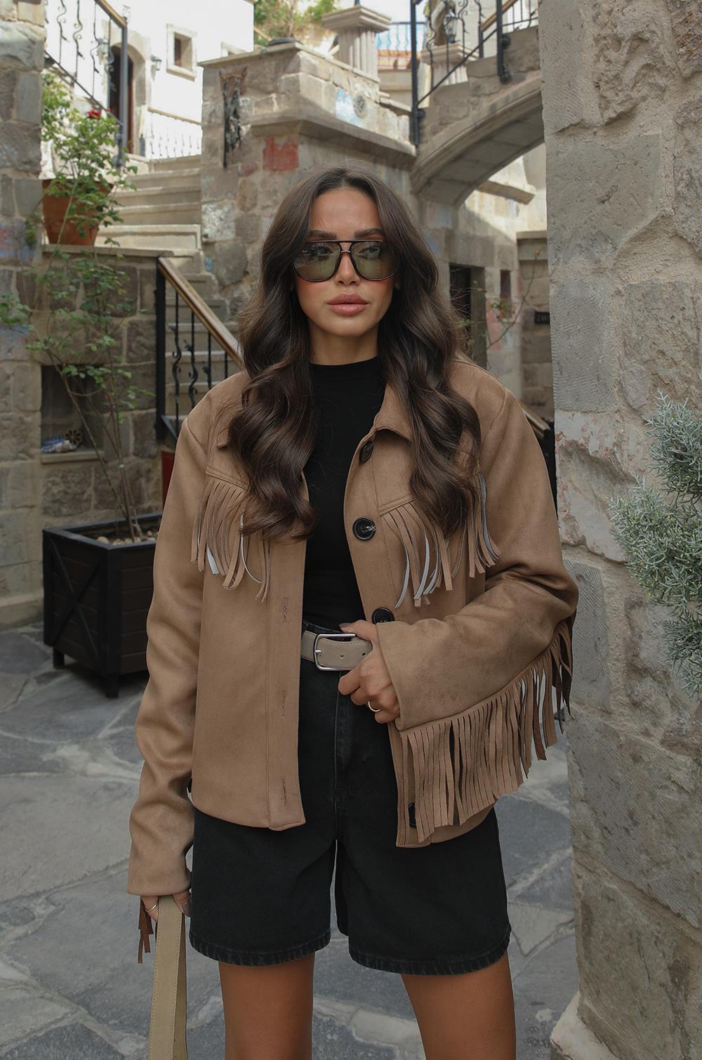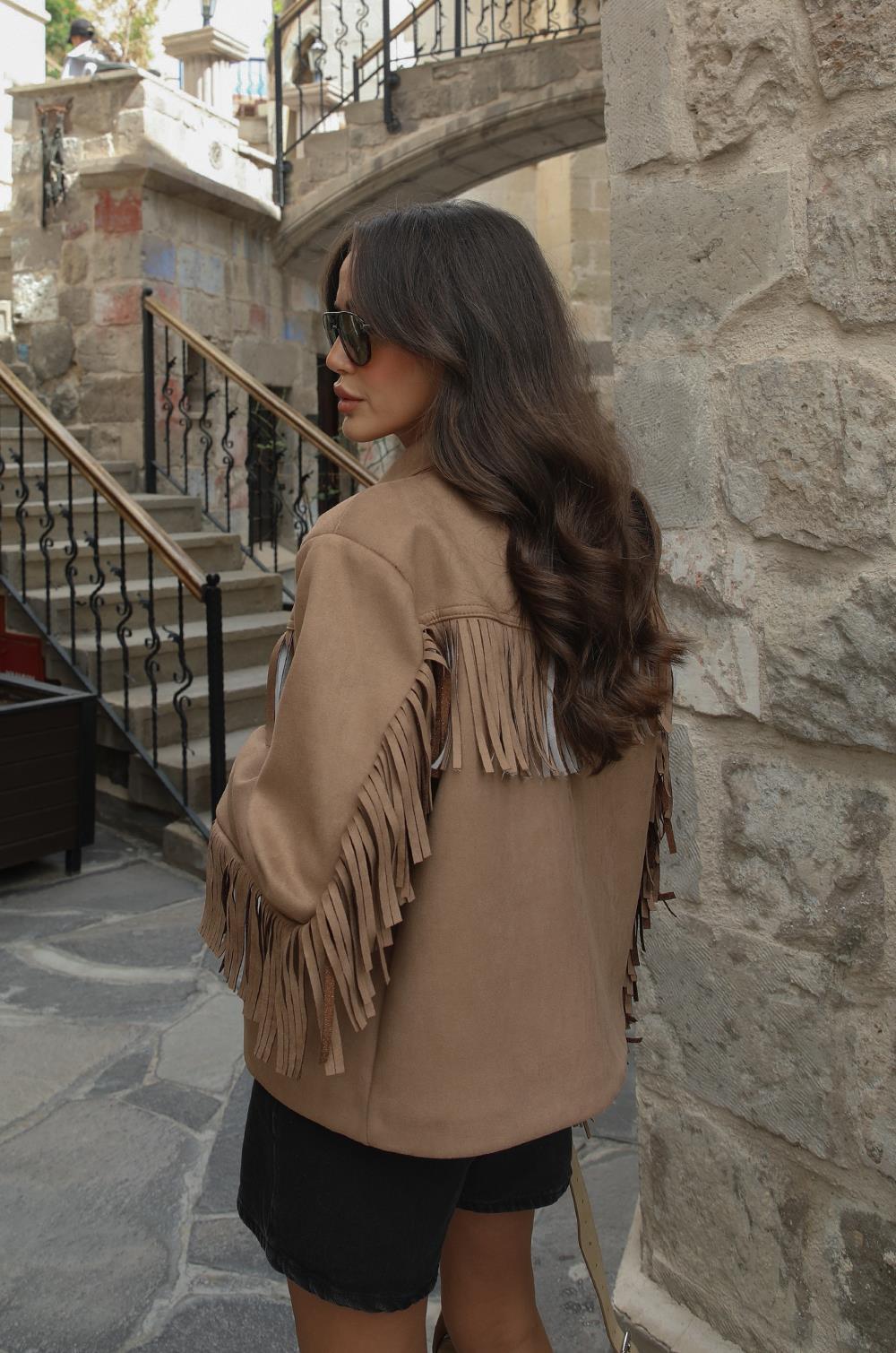 AÇIK KAHVE PÜSKÜL DETAYLI SÜET CEKET