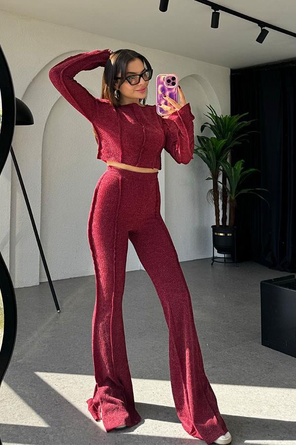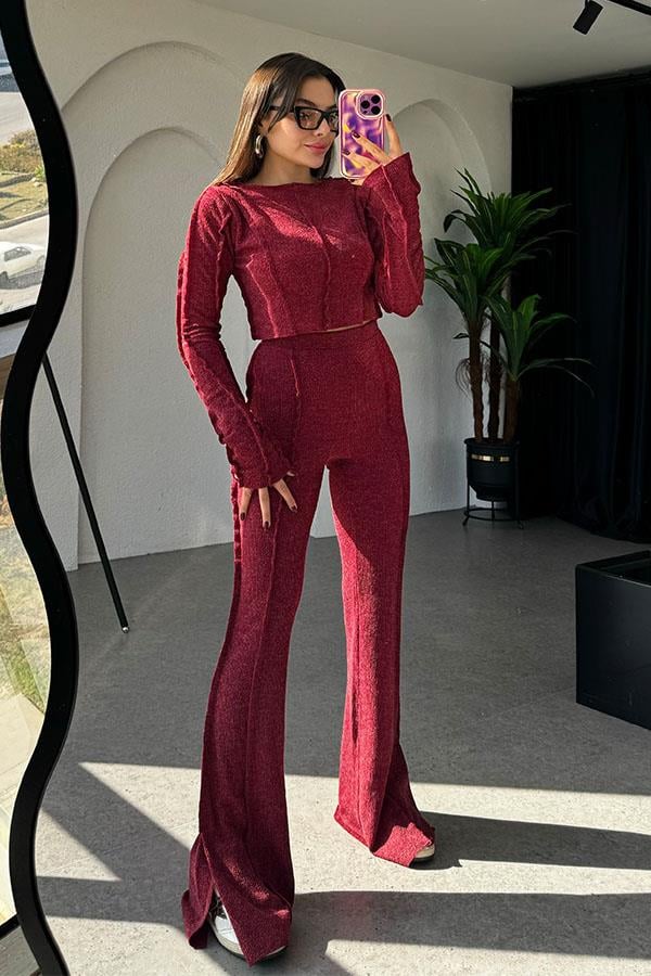 Adel ters dikişli bordo kırçıllı takım - modern yaşamın gereksinimlerine uygun, şık ve fonksiyonel bir seçenek. Hem günlük hem de özel anlarınızda rahatlıkla kullanabileceğiniz bu tasarım, kaliteden ödün vermeyenler için. Her detayında özenle işlenmiş zarafet, her adımınızda size eşlik edecek. Yeni koleksiyonumuzla, farklı ve şık bir tarz keşfedin. Size özel bir deneyim sunuyoruz.
